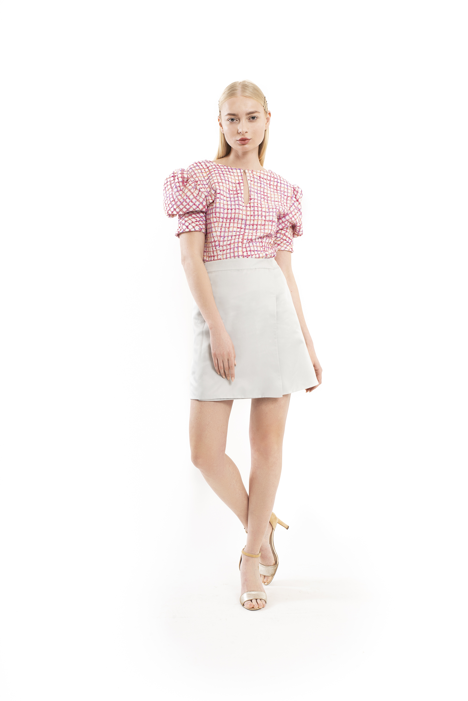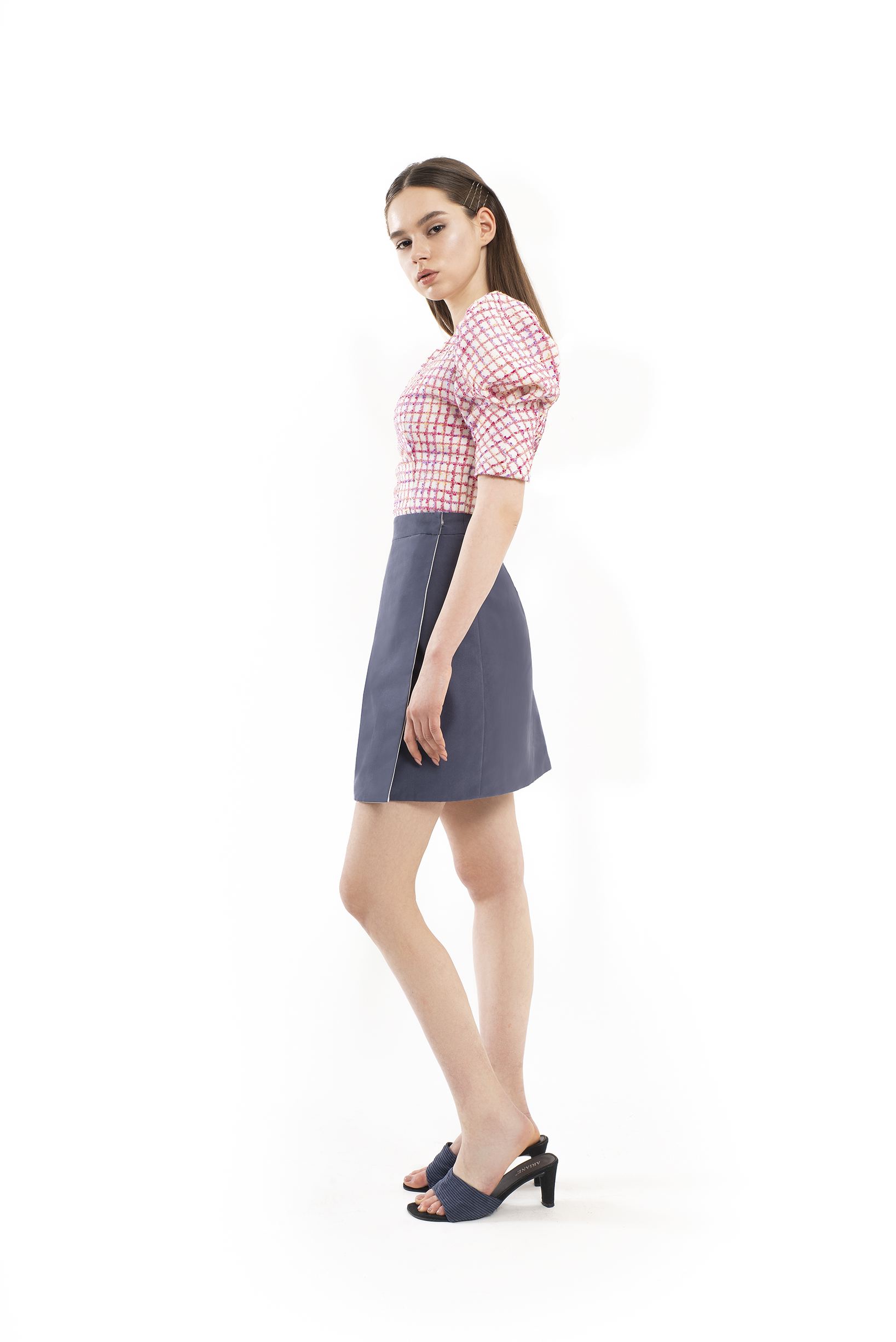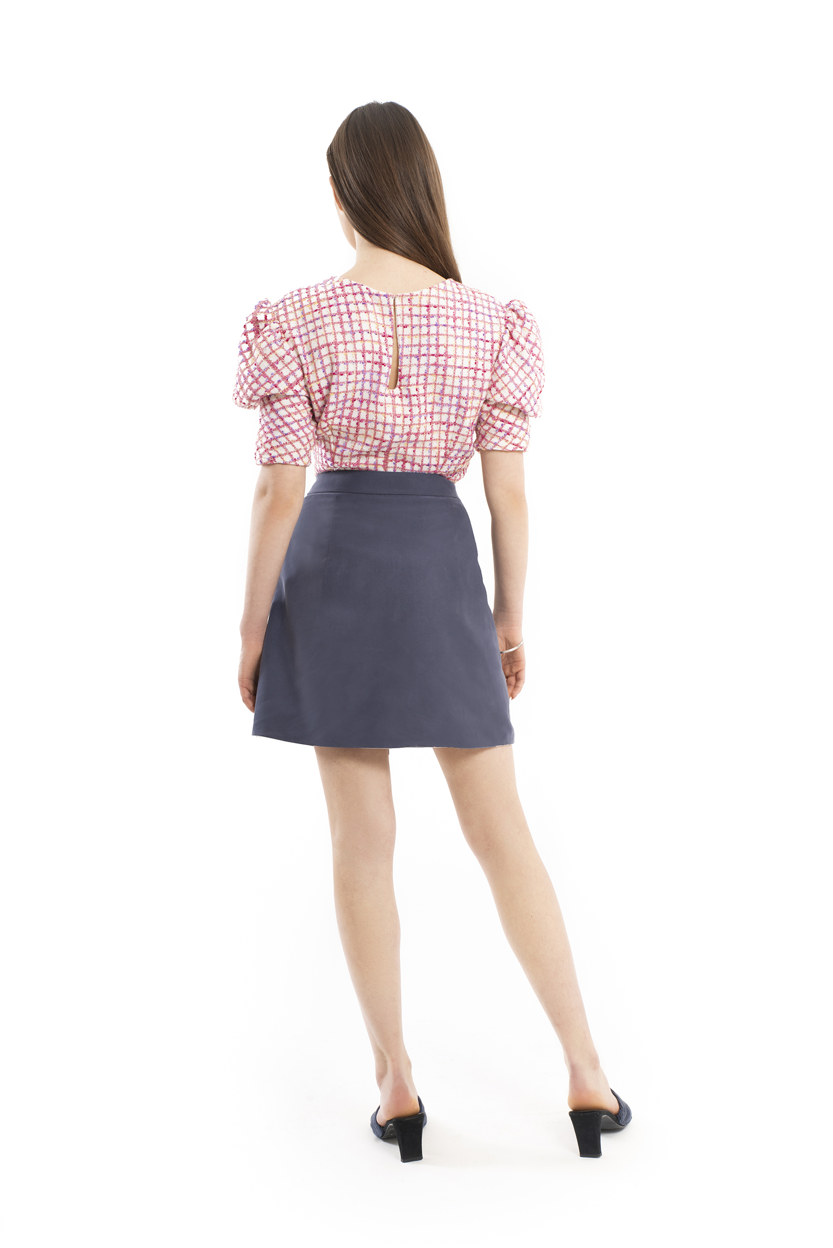 Jupe portefeuille réversible en soie 2 côtés – bleu ciel et bleu marine.La fabrication de ce vêtement prend de 7 à 10 jours ouvrés.
